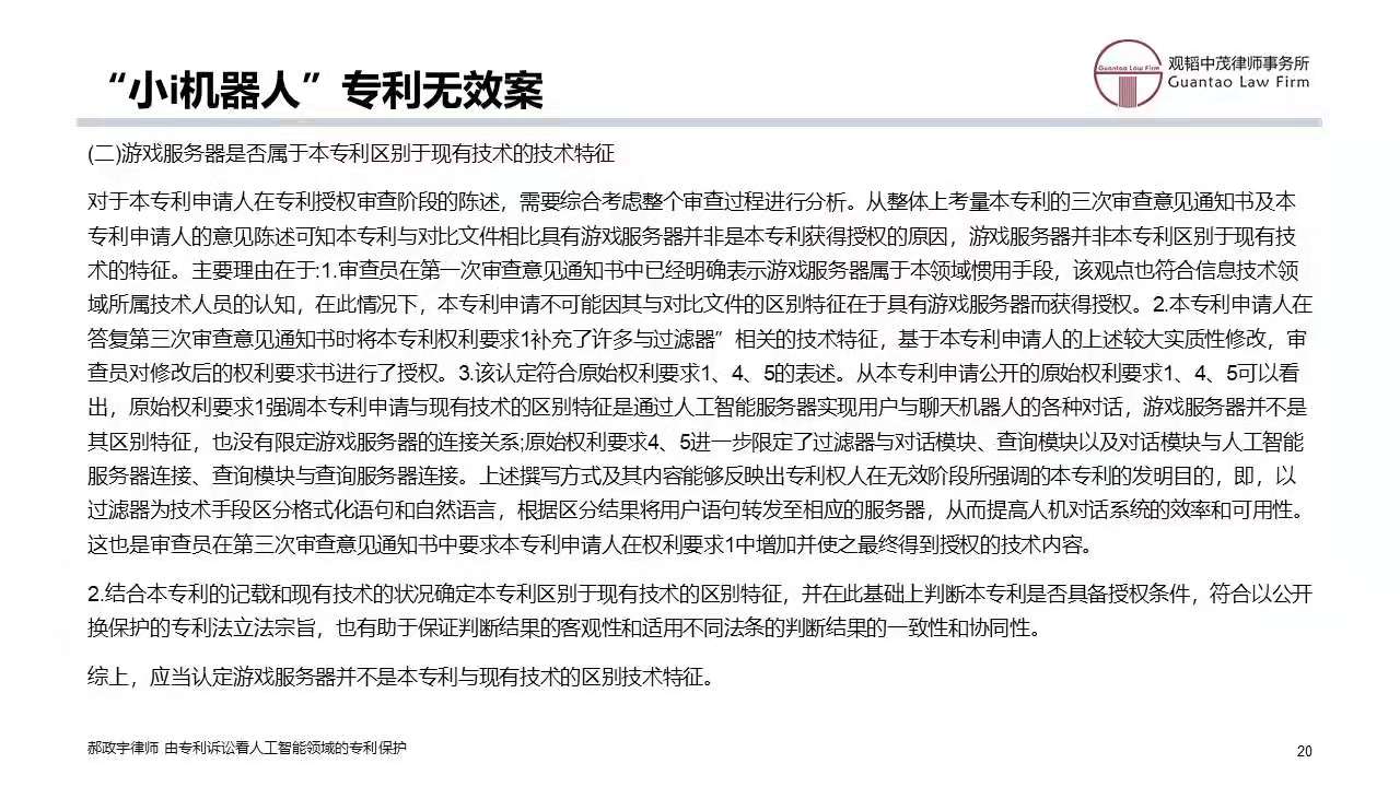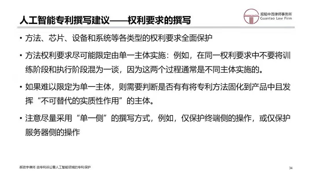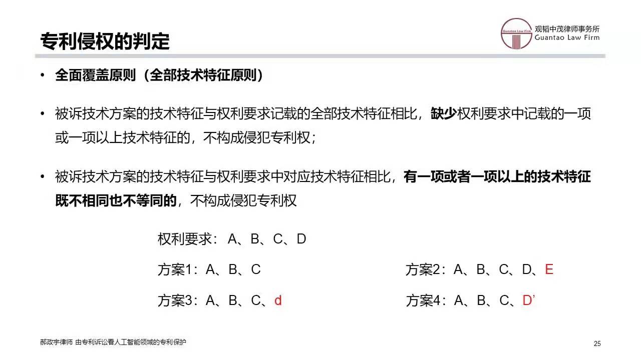 由于该从属权利要求2限定了这三个方面的特征,导致该从属权利要求的保护范围相对较小。设想一下,如果在无效程序中,独立权利要求1难以维持,当我们把从属权利要求2作为新的独立权利要求1时,上述三个方面的特征均作为限定保护范围的必要技术特征,缺一不可,由此导致新的权利要求1的保护范围一下缩小了很多。而作为可能的侵权一方,假设其在描述标准判断过程中,仅仅判断是否符合标准A或标准B,而不是对两个标准均进行判断;或者,其是先进行标准B的判断,而后再进行标准A的判断,那么,从字面上来看,均不构成对新的独立权利要求1的侵权。