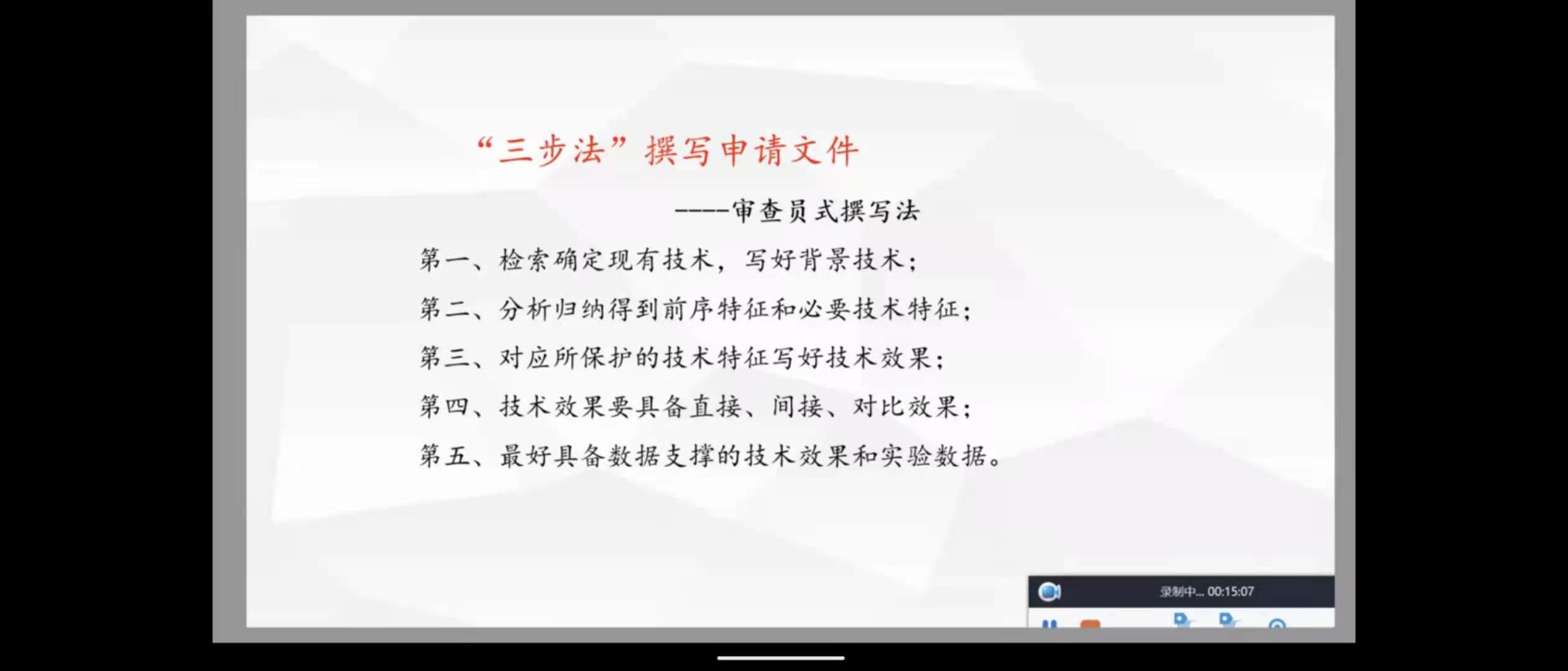 其中,第一步需要技术功底,第二步需要文字表达能力,第三步需要对专利法的运用能力。