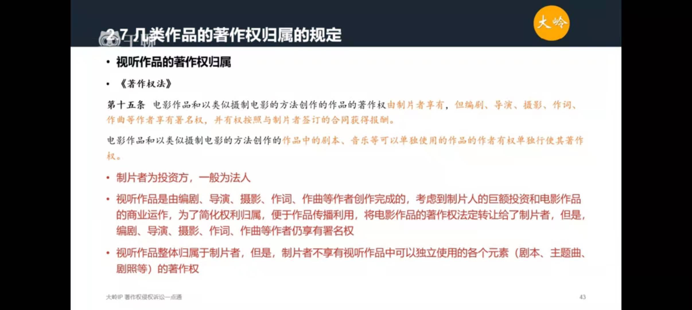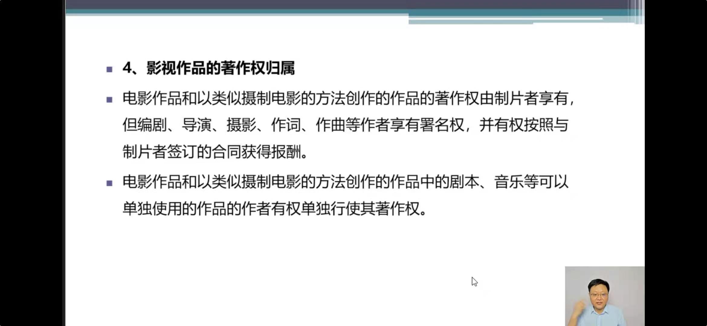 完善视听作品归属规则,对于电影作品和类电作品仍然保持现行法关于视听作品归属的特殊规则,著作权由制作者(制片者)享有。对于电影作品和类电作品之外的视听作品权利归属则以当事人约定优先,如果没有约定才适用权利归属于制作者的规则。同时,增加可单独使用的作品的权利行使规则,以促进剧本、音乐等作品的传播与利用;