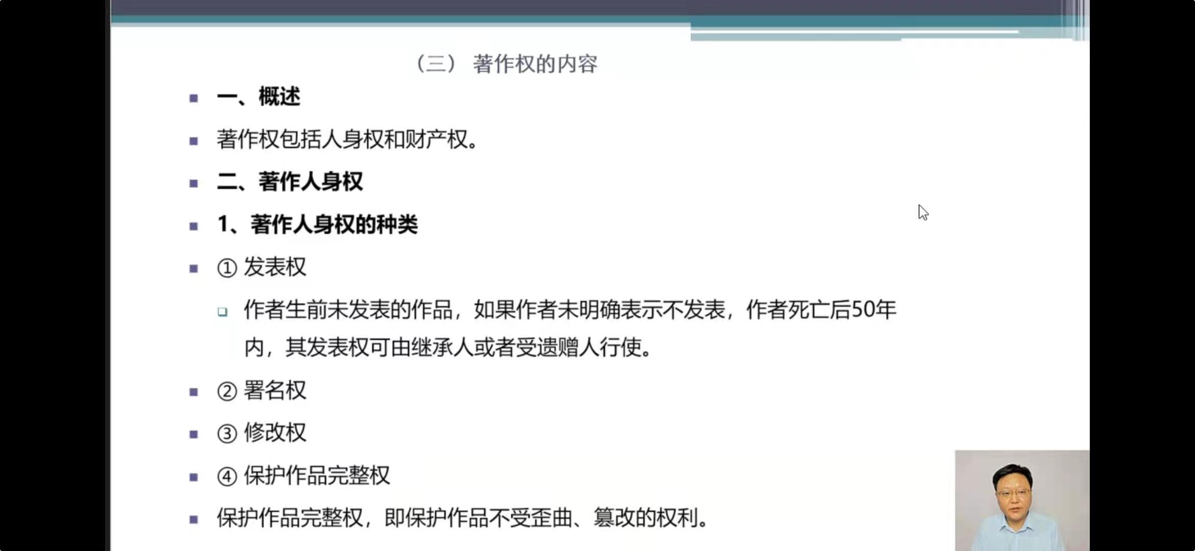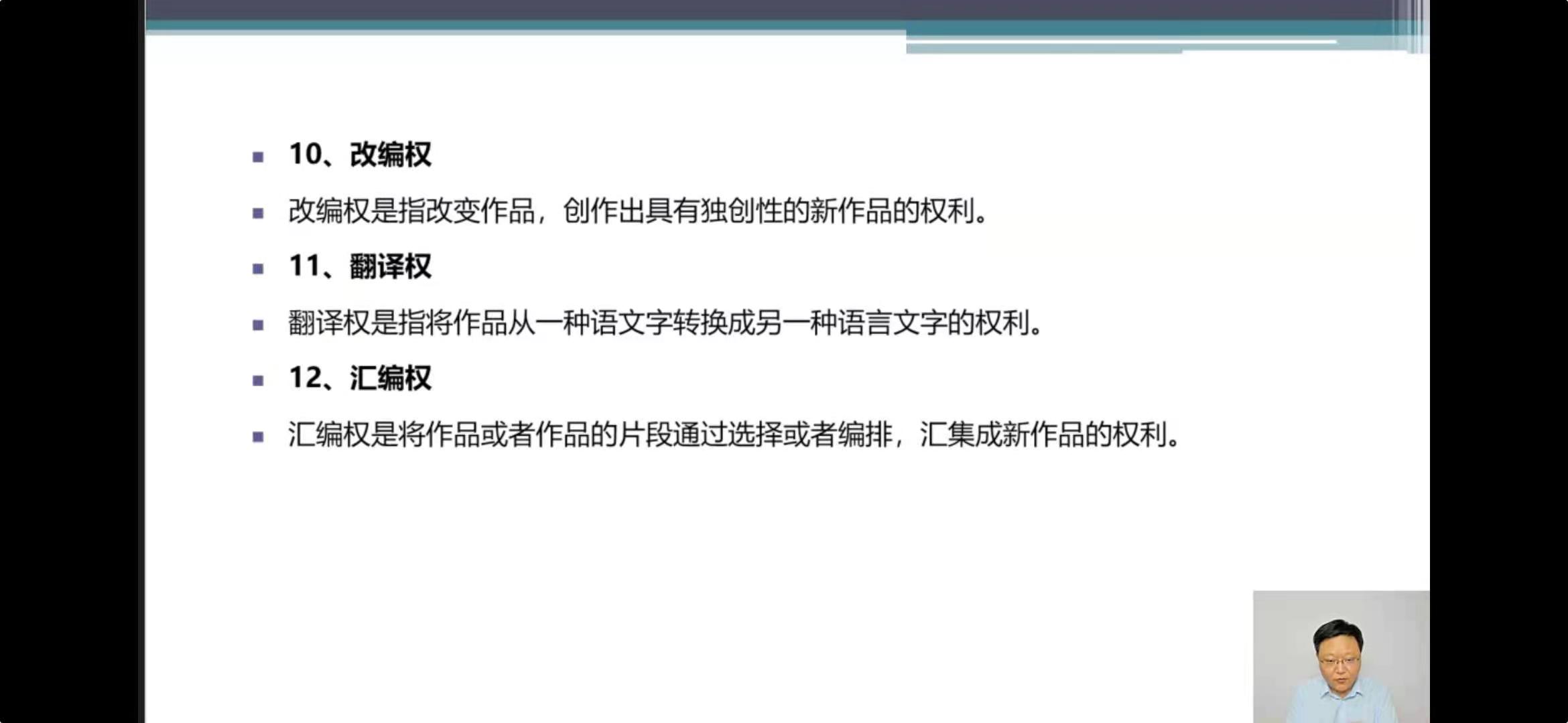 著作权的权利内容是著作权法的核心部分,现行《著作权法》第10条列举了4项人身权利和12项财产权利。12项著作权财产权利的划分依据是作品的使用方式,而传播技术的发展使作品的利用方式更为丰富,有些传播方式无法为现行规定所涵盖。本次修改对技术发展给著作权法带来的问题进行了回应,同样有三处值得关注的变化: