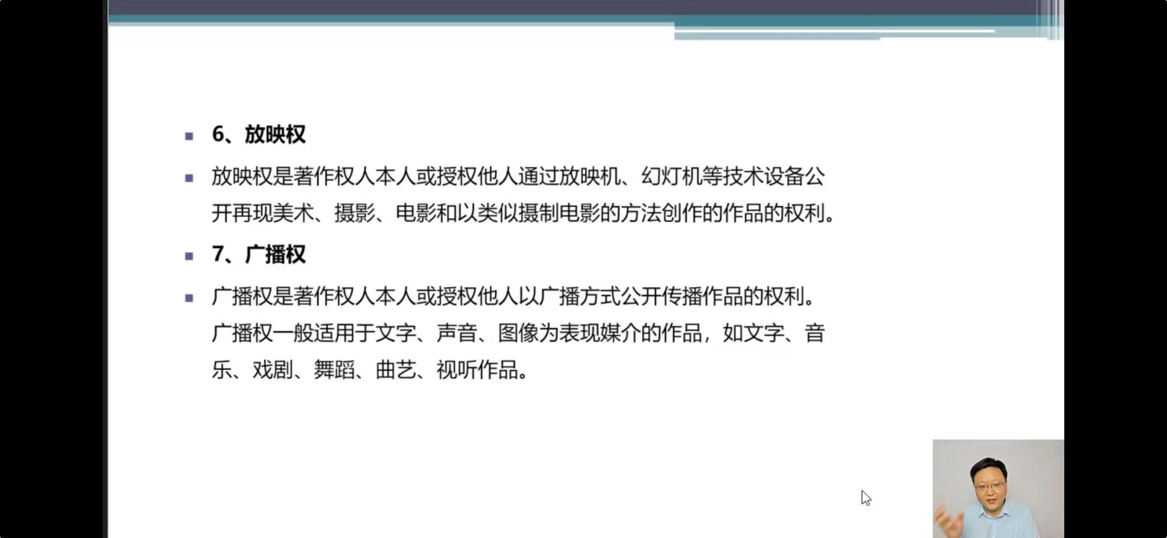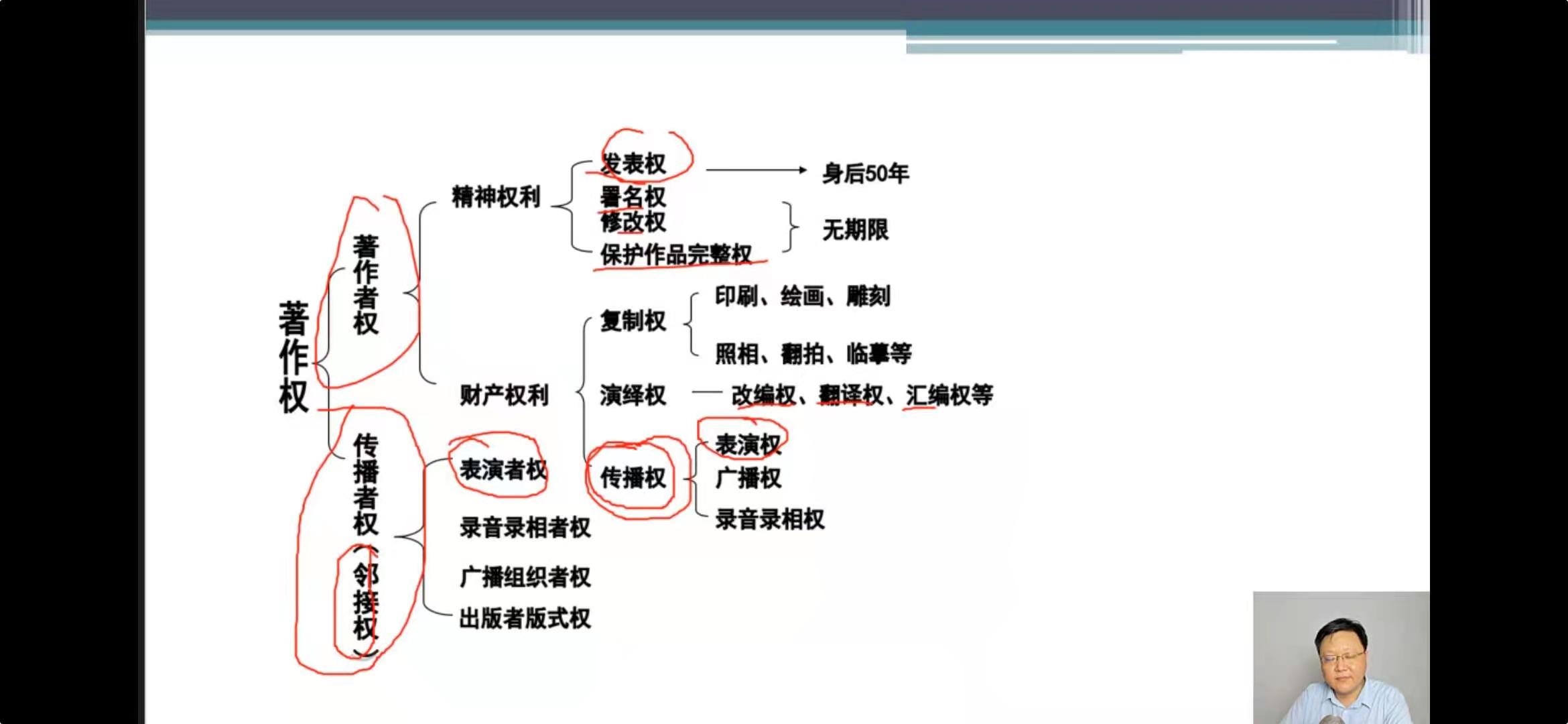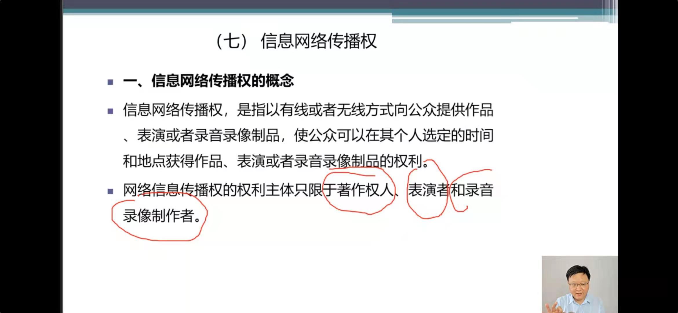 关于广播权与信息网络传播权,2020年《著作权法》修改了广播权的定义,取消了须为无线方式公开广播或传播的规定,使互联网直播行为落入广播权的控制范围,解决了长期以来广播权和信息网络传播权都无法控制网络直播行为的现实困境。