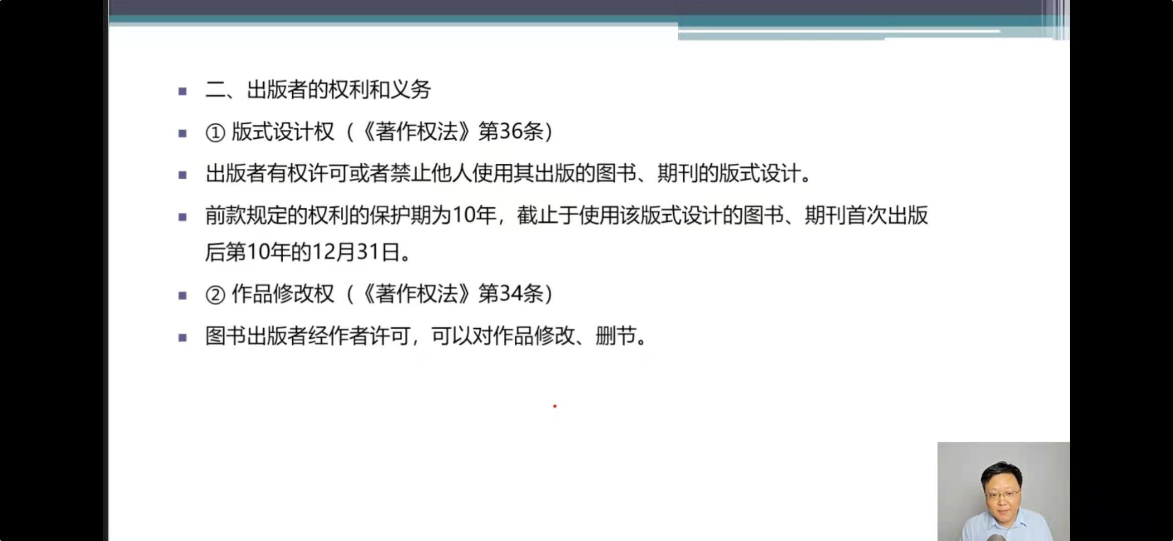 邻接权是对作品传播者权利的概括性称谓,在理论研究中被广泛使用,本次修改在文本上统一表述为“与著作权有关的权利”(出于行文方便的考虑,下文延续“邻接权”的表述)。我国邻接权制度包括出版者权、表演者权、录音录像制作者权和广播组织者权四个部分,本次修改的主要变化为: