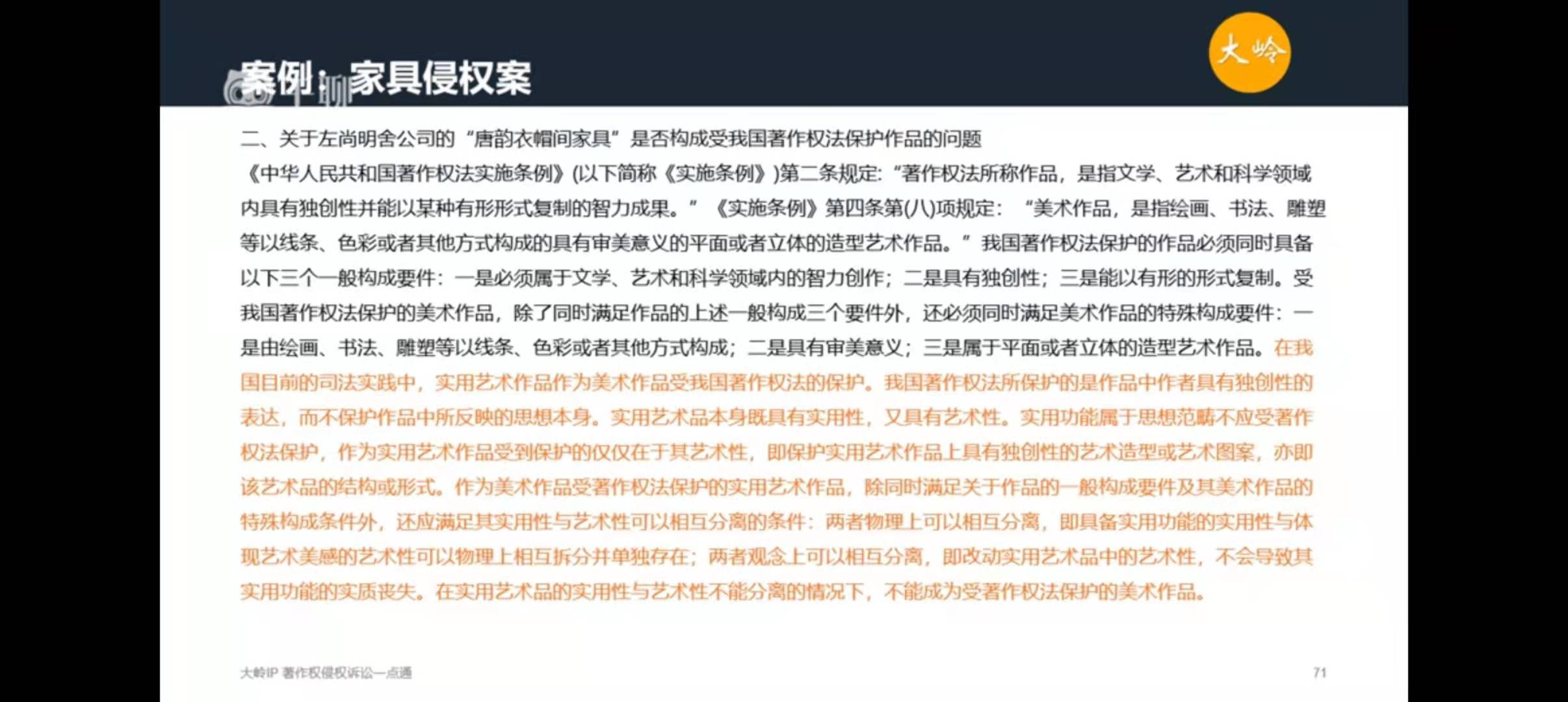 由于现行《著作权法》缺乏对实用艺术品受到著作权法保护条件的明确规定,著作权法草案目前也将原本准备增加的作品类型“实用艺术品”删除,理论和司法实践中对此尚有争议。实践中,存在将服装成衣作为实用艺术品进行著作权法保护的司法案例。