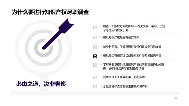 为什么知识产权尽职调查如此重要?在诸多以知识产权为重要资产的公司进行并购之前,因为缺乏充分的尽职调查,而使公司遭受难以弥补的损失,丧失了竞争优势。