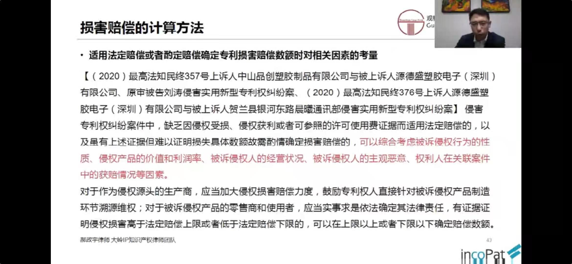最后,法官自己定,实在不知道法官会怎么定,专利权人就比较难操作,赔偿额只能听天由命。
