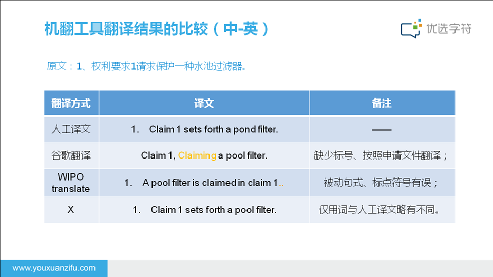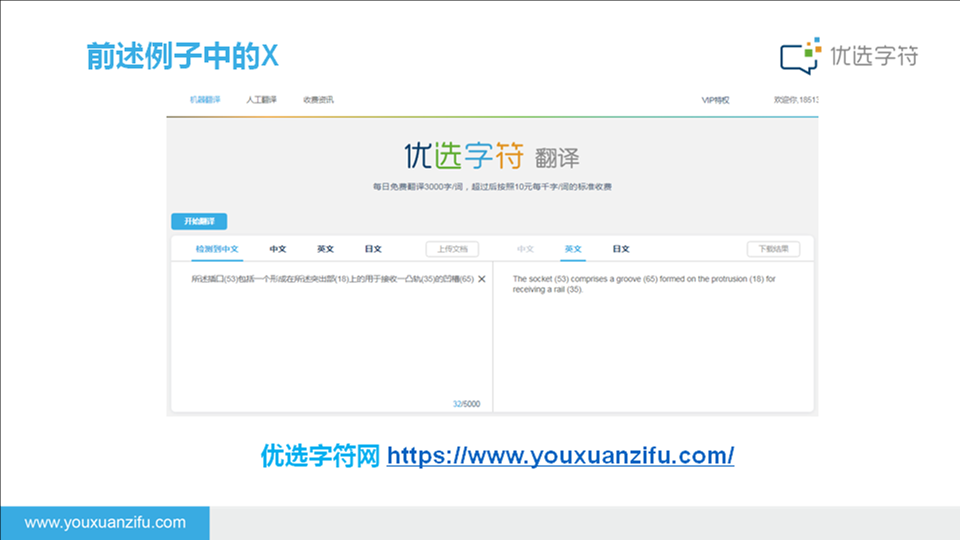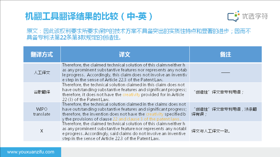 对于日常用语、信函、合同、广告等非专利文件,优选字符机器翻译并不擅长哦~