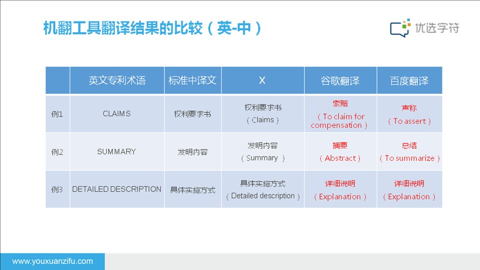 通过以上对比,我们不难看出,在中英翻译过程中,当搜索某一中文字词找到多个英文单词结果时,大多数情况下这些英文单词也会有各自不同的含义和适用场景。我们需要首先明确这一中文字词在中文语境下的意思,然后有目的性地查找并选择出对应的英文,从而保证译文忠于原文,确保专利翻译的准确度。