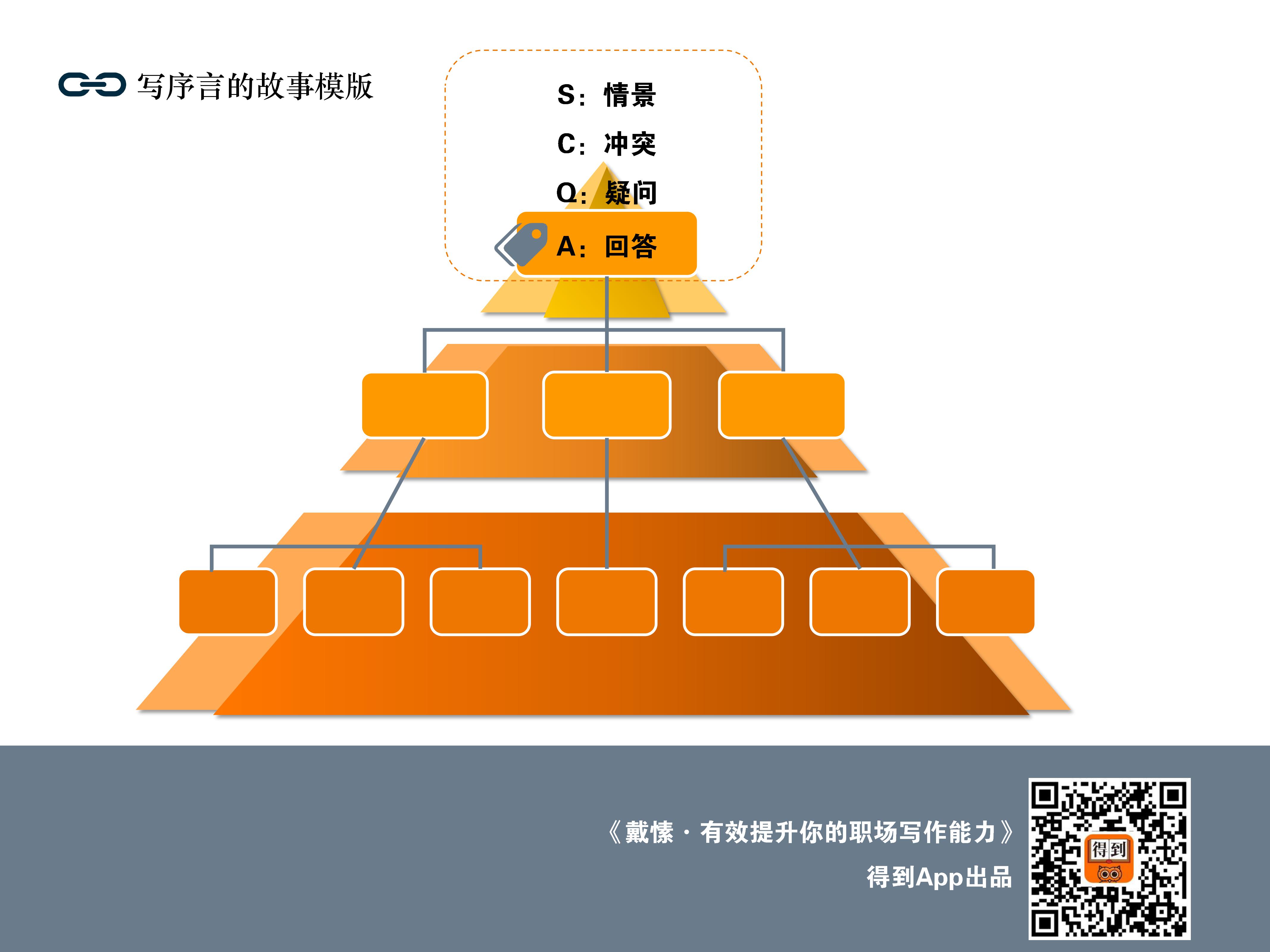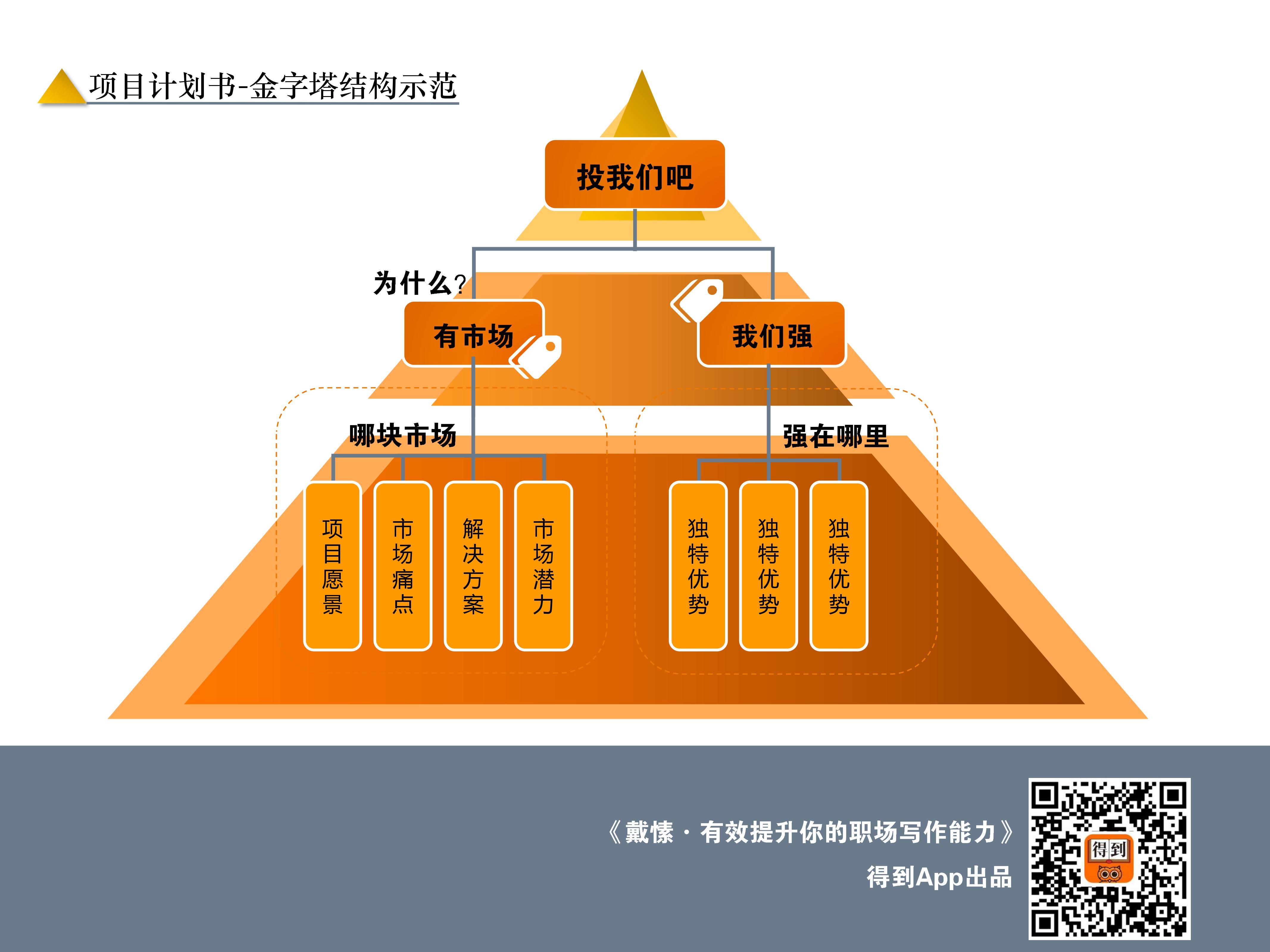 当你需要写相对应文案的时候,你只要看着这个金字塔,按照我们课程里的方法,把塔尖做成序言,把金字塔的第二层做成文章的小标题,最后把金字塔第三层,做成段落。