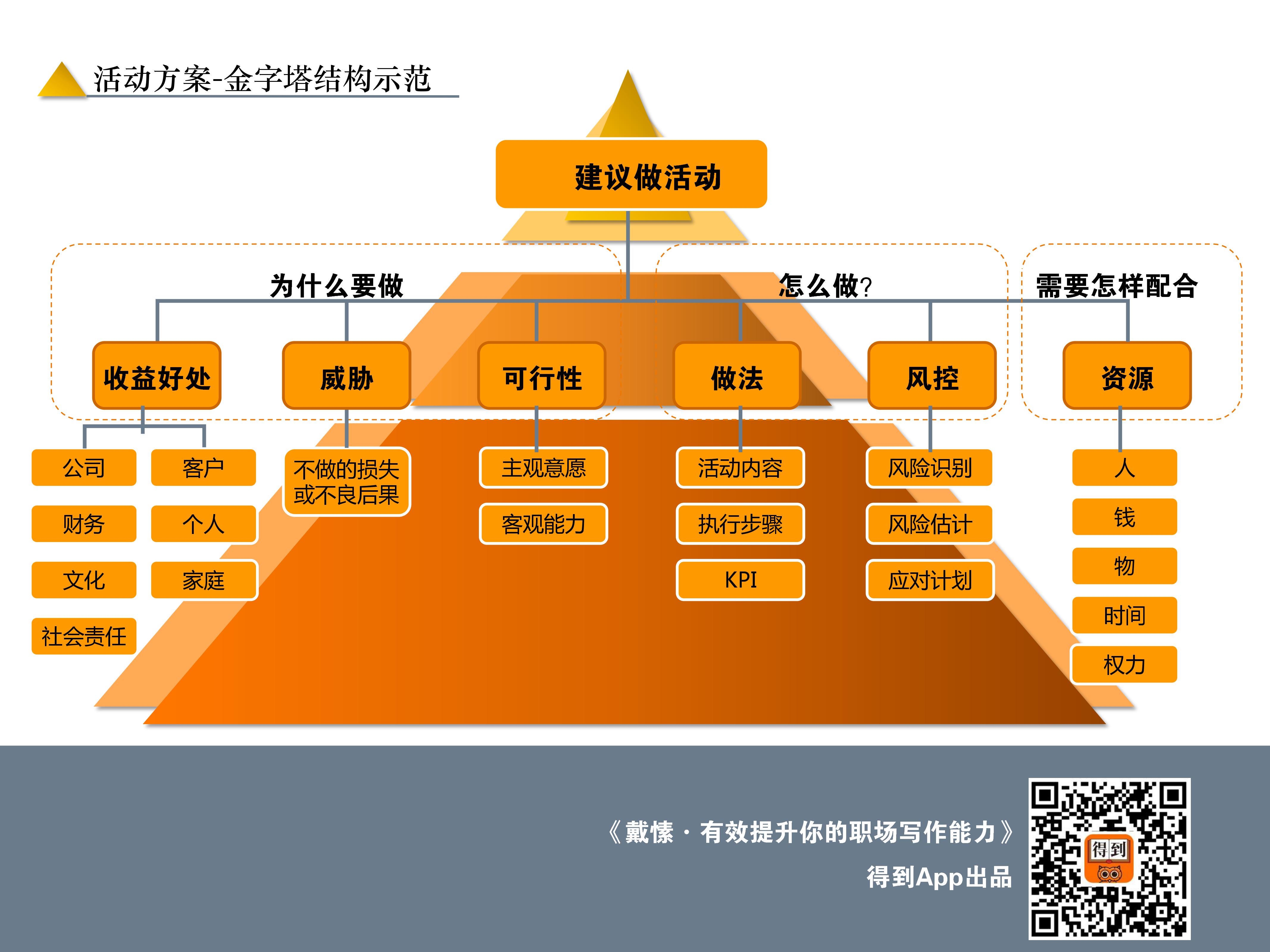 在这一讲中,我给你提供几个做好的金字塔,包括: 年终总结、活动方案、工作计划、加薪申请、会议记录、项目计划书, 你可以按需取用。