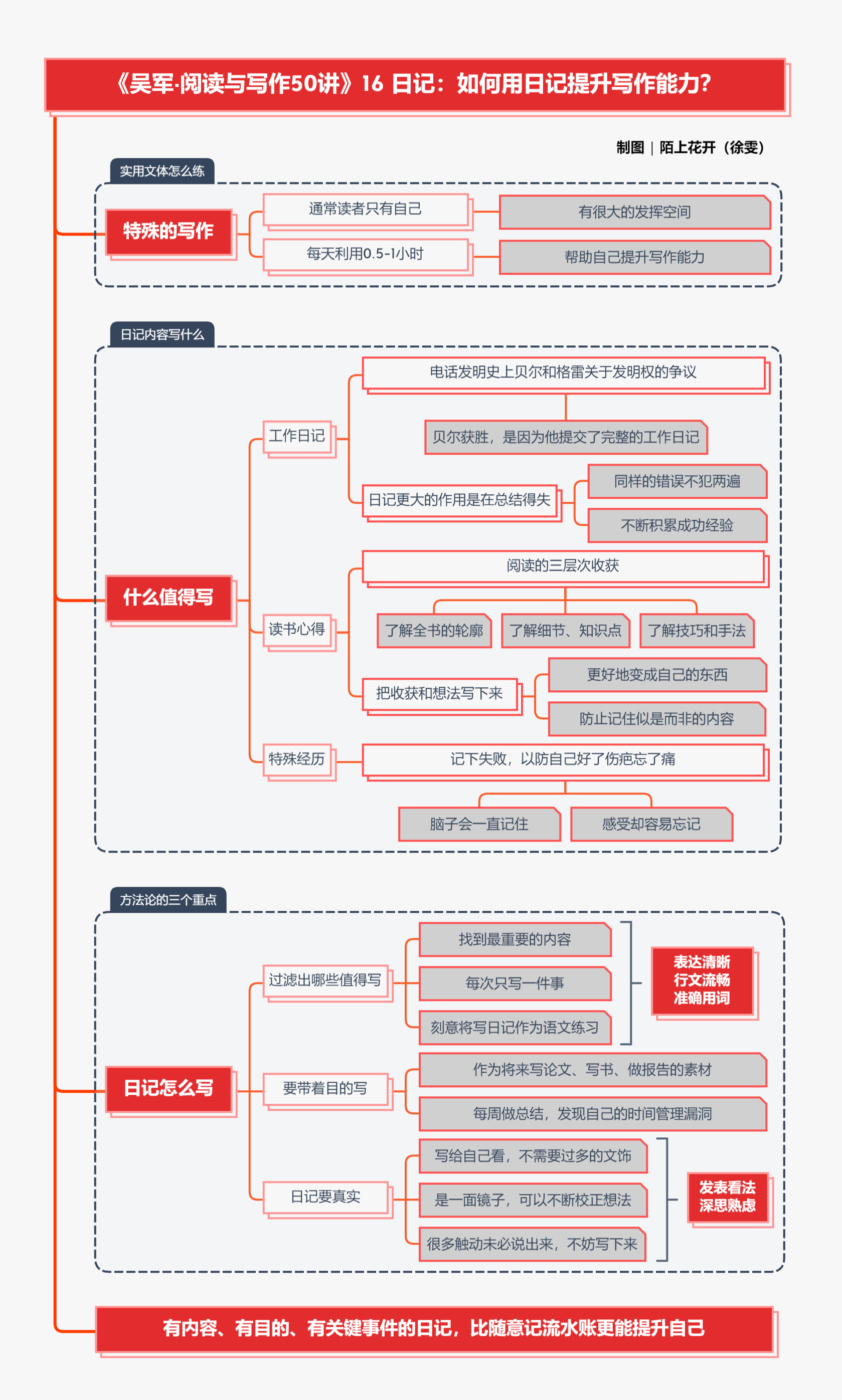 工作日记、读书心得和特殊经历的记录,是比随意记流水账更能提升自己的练习。写日记要学会过滤值得写的内容,带着目的去写,还要真实记录。